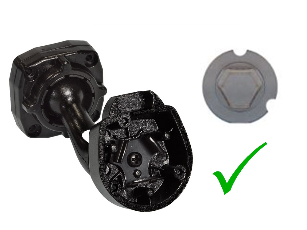 De KTE-DME-BSTEL is samen met de DME-R1200 volledig compatibel met voertuigen met “REMIfront”-voorruitzonwering en deze originele achteruitkijkspiegelhouder: