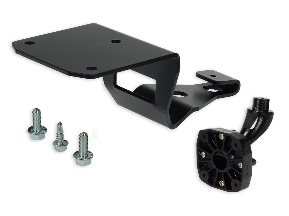 De set bevat een metalen montagebeugel met schroeven en een verstelbare spiegelhouder. Dankzij het kogelgewricht kunt u de digitale spiegel volledig aanpassen aan uw zithoogte en -positie.