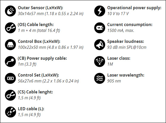 Multifunctioneel laser detectie systeem met vier sensoren.