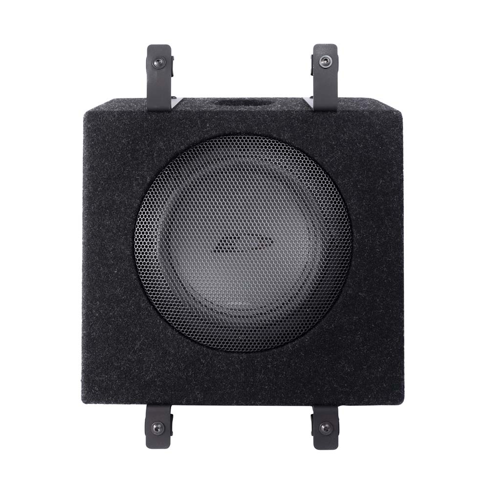 The 180 Watt subwoofer comes pre-installed in a sealed, custom-fit wooden enclosure for installation under the passenger seat to add powerful bass to your existing sound system.