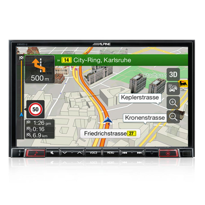 The iGo Primo NextGen navigation is currently one of the best navigation software on the market. Combined with Alpine’s powerful hardware and processing power, you get a highly accurate and super fast navigation system for your car. For example, calculating a route from Munich to Paris takes just a few seconds. The system is packed with tons of useful and unique navigation features, from partial address input with automatic detection, TMC route guidance, 3D landmark icons and much more. It also includes hundreds of thousands of POIs, to make it easy to find restaurants and any kind of public places near you.