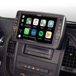 Alpine introduces the 3rd generation Alpine Style navigation system for Mercedes Vito (447). The X903D-V447 features a huge 9-inch touch-screen that is installed off-set from the dashboard to be perfectly reachable from the driver’s seat. This makes it very easy to see and control navigation maps and other functions.