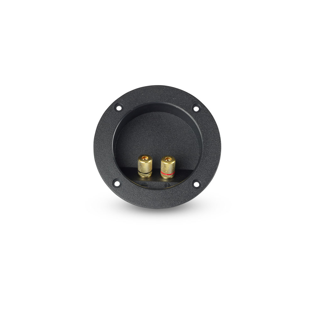 Boxterminal met 2 polige layout, rood en zwarte RCA aansluiting. Perfect geschikt voor het bouwen van een eigen subwoofer kist met extra stevig geluid.
