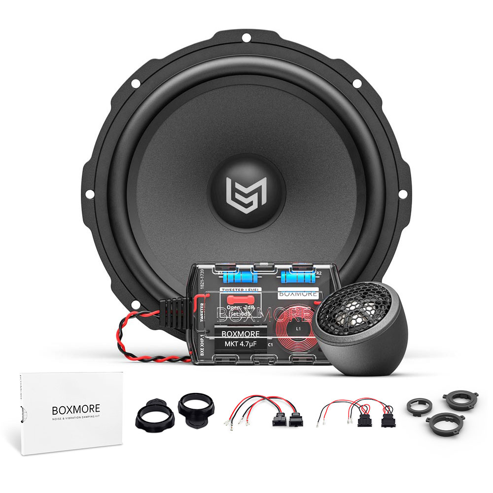 De BOXMORE BXE K165 S3.1 is een 2-weg componentensysteem met een midwoofer en losse tweeter. Door deze combinatie kunnen verschillende frequenties nauwkeuriger worden weergegeven dan bij standaard coaxiale luidsprekers.