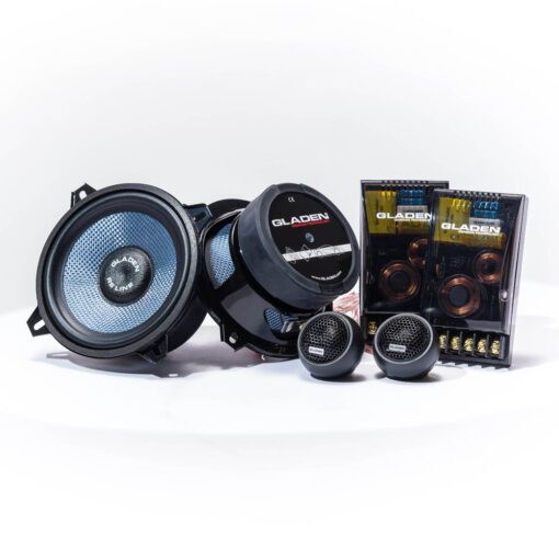 2-Weg 130 mm Gladen componenten systeem. De Gladen RS kickbassen zijn voorzien van diverse nieuwe features waaraan het systeem zijn uitzonderlijke performance te danken heeft waaronder een zeropoint dustcap, NOMEX spider en een impedantie van 3 Ohm. Bovendien wordt de RS 130 geleverd met 25 mm softdome tweeter en een uitgebreid instelbaar 12 dB crossover.