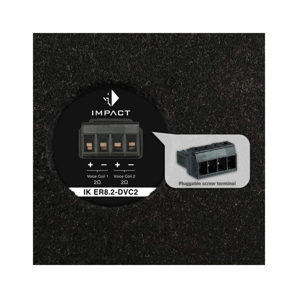 Dankzij de handige pluggable schroefterminal kan de subwoofer eenvoudig en veilig worden geïnstalleerd of verwijderd. De configureerbare spreekspoelimpedantie (2 x 2 Ohm, 1 x 4 Ohm of 1 x 1 Ohm) maakt integratie met verschillende versterkers mogelijk, zodat de installatie moeiteloos op uiteenlopende systemen kan worden afgestemd.