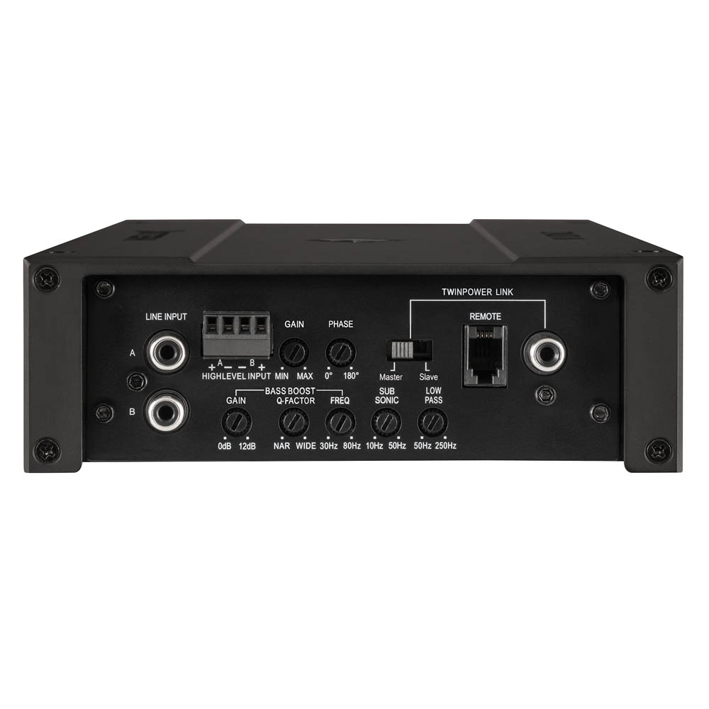 - Small footprint Class D amplifier with up to 1,180 Watts RMS output power @ 1 Ohm for easiest combination with all 2 x 2 Ohms subwoofers connected in parallel