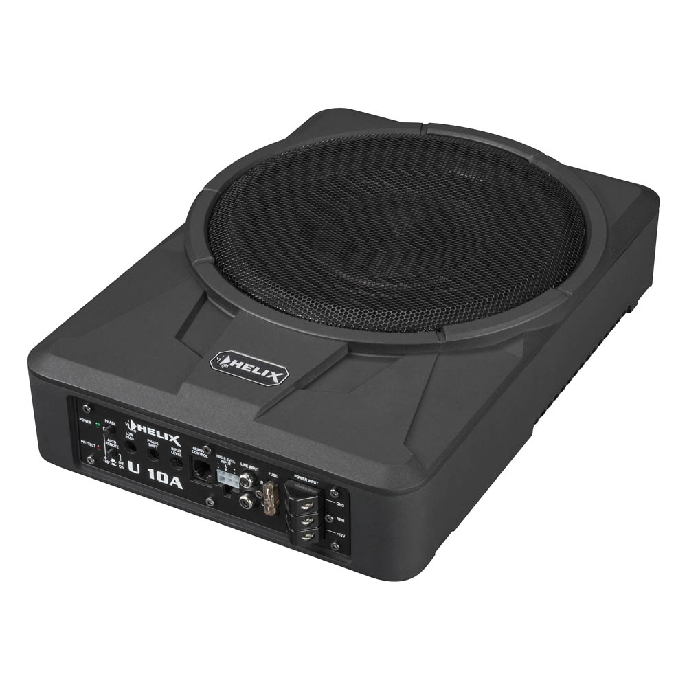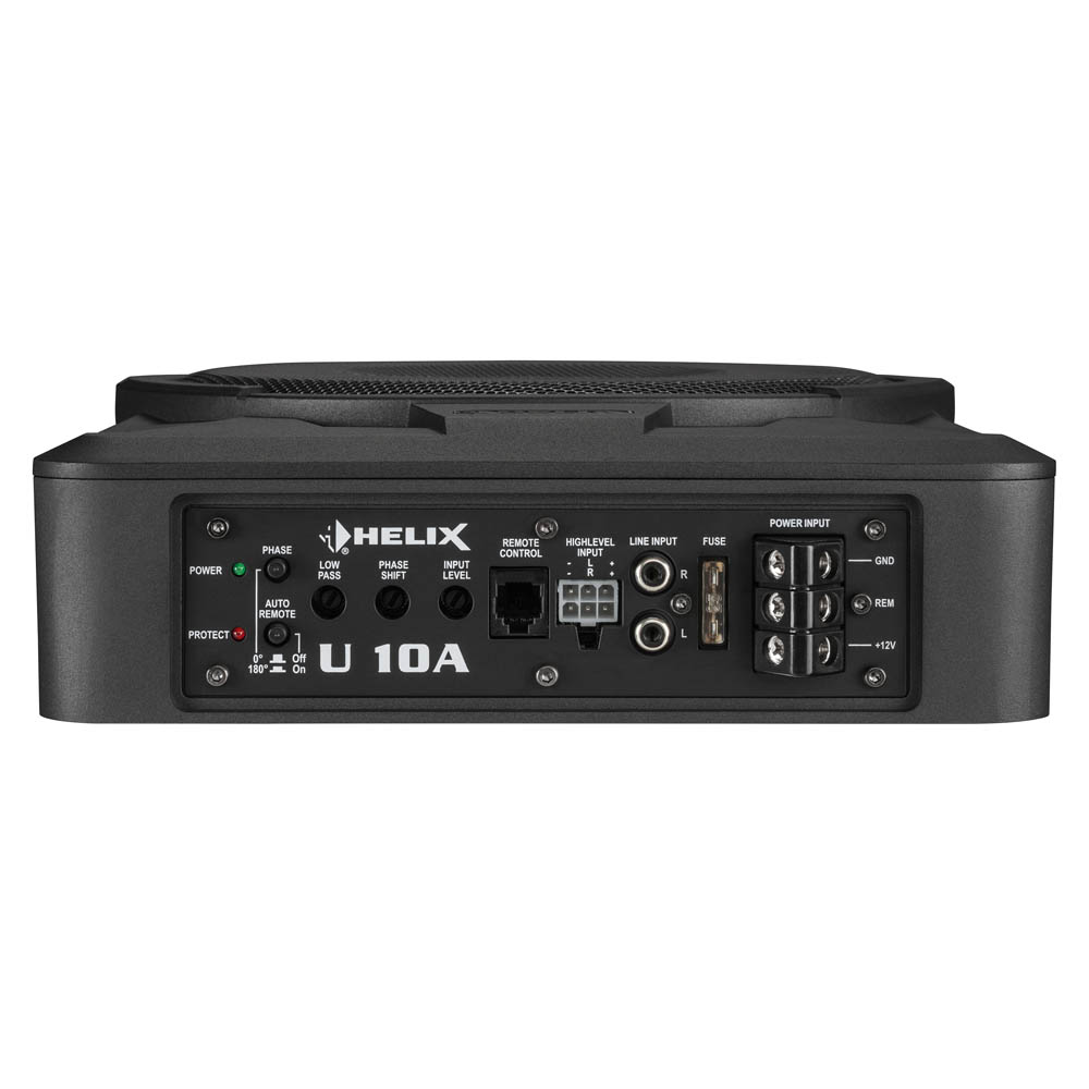 Bass is in the smallest hut –If mounting space in the vehicle is scarce and existing car hifi systems badly need the “extra kick” in the low frequency range without great effort, the new HELIX active subwoofers U 10A and U 8A are the right choice. Driven by powerful, integrated Class AB amplifiers with 180 W RMS, the heavy-duty drivers with their rock-solid aluminum cones and heat-resistant voice coils easily transform the amplifier power into punchy bass. Thanks to comprehensive setting options like the adjustable, high-slope lowpass filter and particularly sensitive phase control, the low frequency reproduction can be perfectly adapted to the acoustic conditions inside the vehicle. Equipped with a 2-channel highlevel input with automatic turn on function as well as a 2-channel lowlevel RCA input a seamless integration is guaranteed. And thanks to the especially shallow cabinet design the installation will be a no-brainer, especially if space is extremely limited – these small “bass boosters” may even fit under the seats, for example.