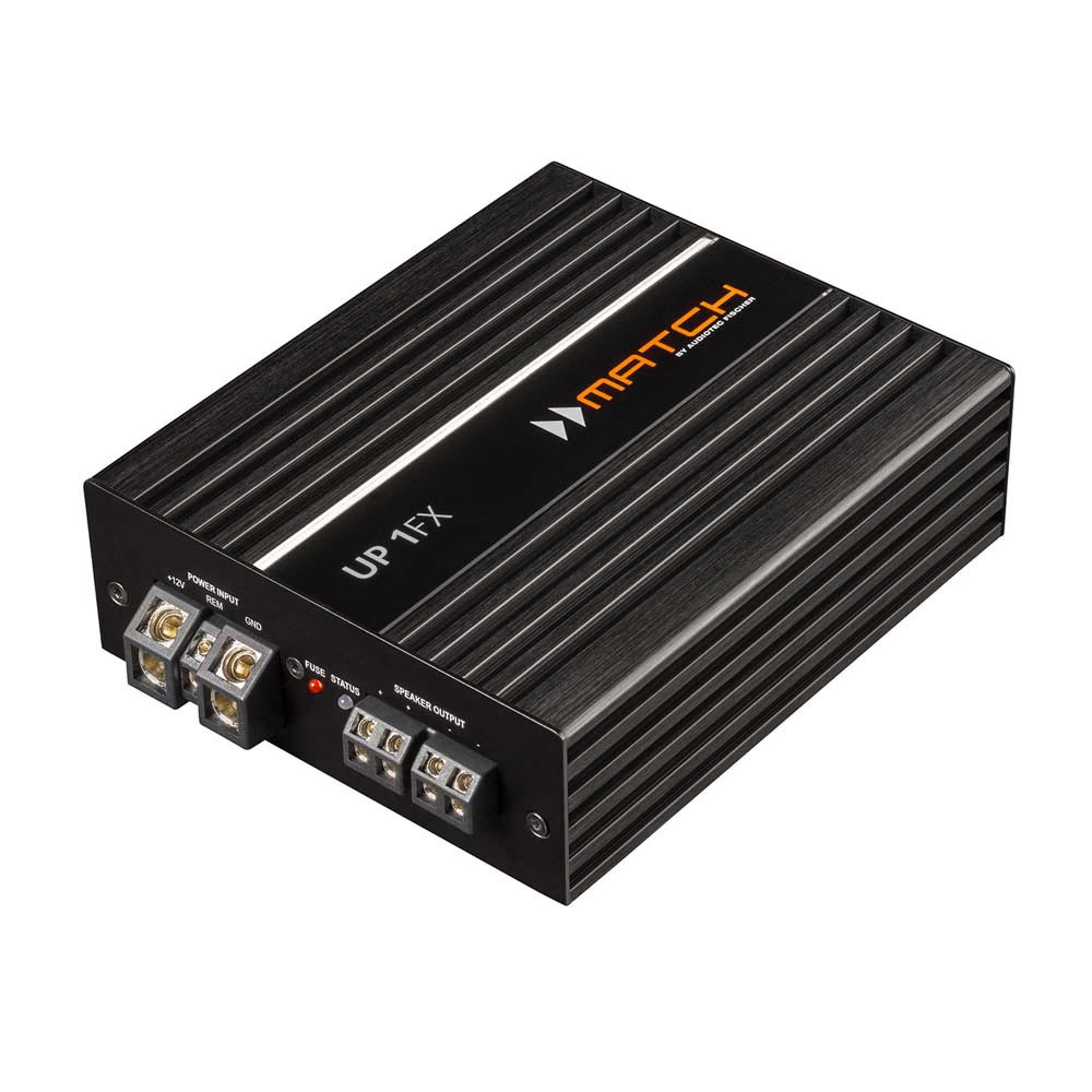 Ondanks zijn indrukwekkende prestaties heeft deze Match mono versterker dezelfde compacte afmetingen als de UP 8DSP-versterker. Hierdoor is een ruimtebesparende installatie mogelijk, zelfs in voertuigen met beperkte ruimte. Dankzij intelligente Klasse D techniek blijft bovendien het stroomverbruik en de warmte ontwikkeling tot een absoluut minimum beperkt.